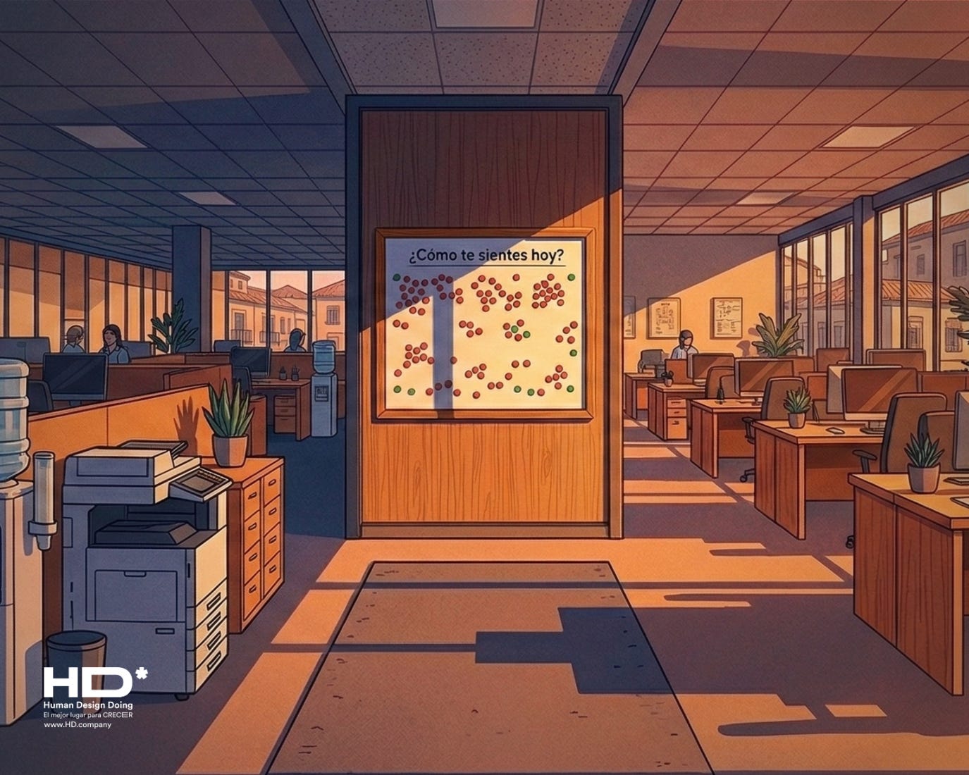 Happyforce digitalizó el pizarrón de los imanes con una sola pregunta diaria y anónima: “¿Cómo te sientes hoy?”.