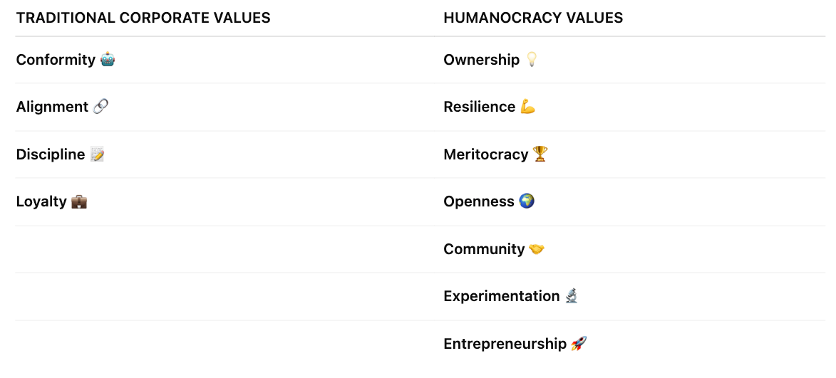 La mayoría, a pesar de hablar de valores como ownership, iniciativa y liderazgo, se siguen basando en valores como conformidad, alineación y disciplina. 😒