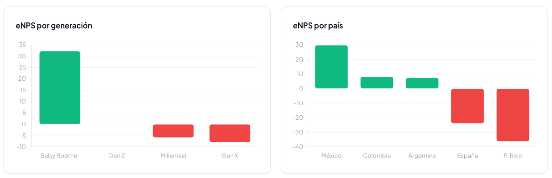 Agárrate fuerte de tu silla ergonómica. Por primera vez en cuatro años de este estudio, el eNPS (esa famosa métrica que evalúa si invitarías a tu mejor amigo a trabajar a tu empresa o si le dirías “¡huye, sálvate tú!”) cruzó la línea de la muerte y cayó a un doloroso -3.55.